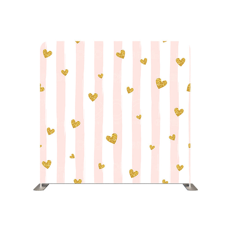 Pillow Cover Backdrop(Gold Heart Glitter Pink White Party Backdrop)